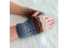 Meleg, puha és elegáns csipkemintás horgolt kézmelegítő. S - M Kék - zöld - bézs - terrakotta színátmenetes.
